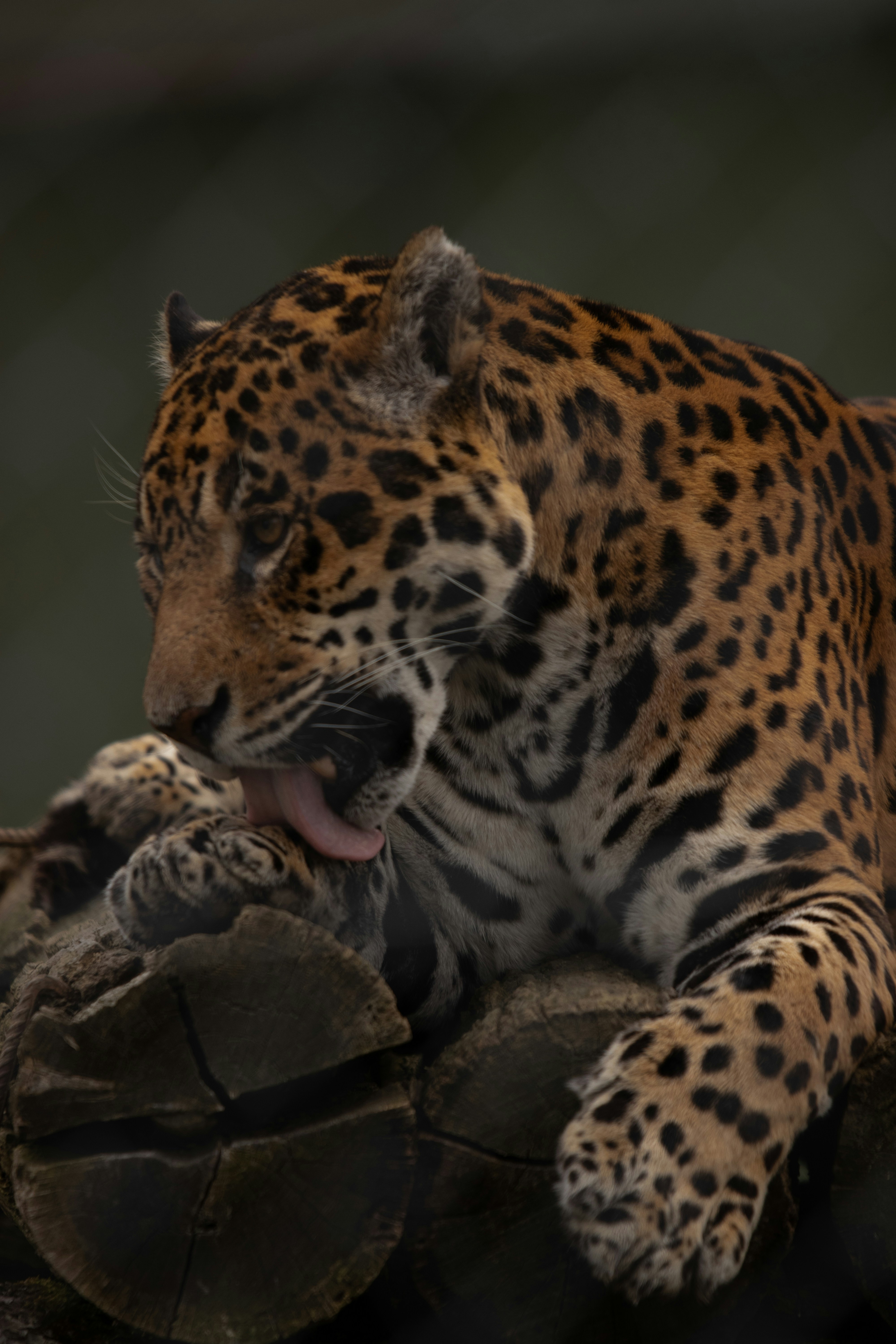 A jaguar licking its paw. Photo by Robert Caia- Unsplash